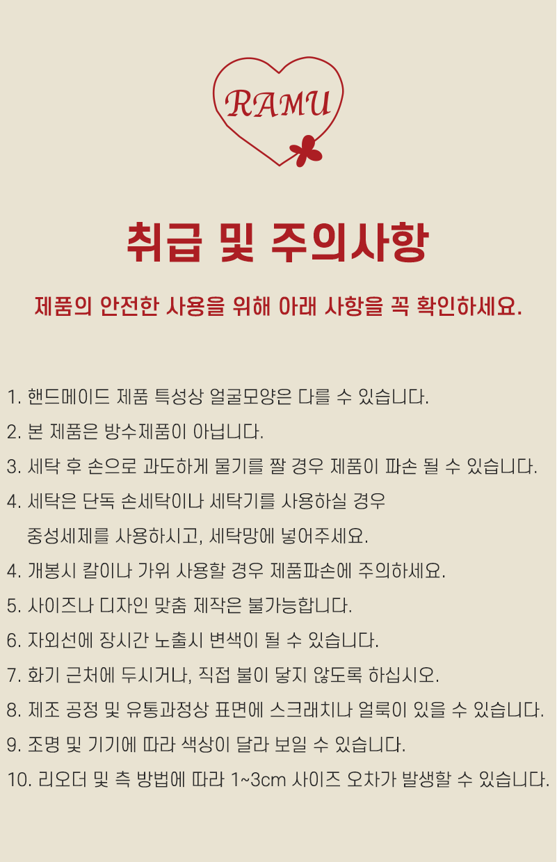 -핸드메이드 제품으로 1~3cm 오차가 있을 수 있습니다.